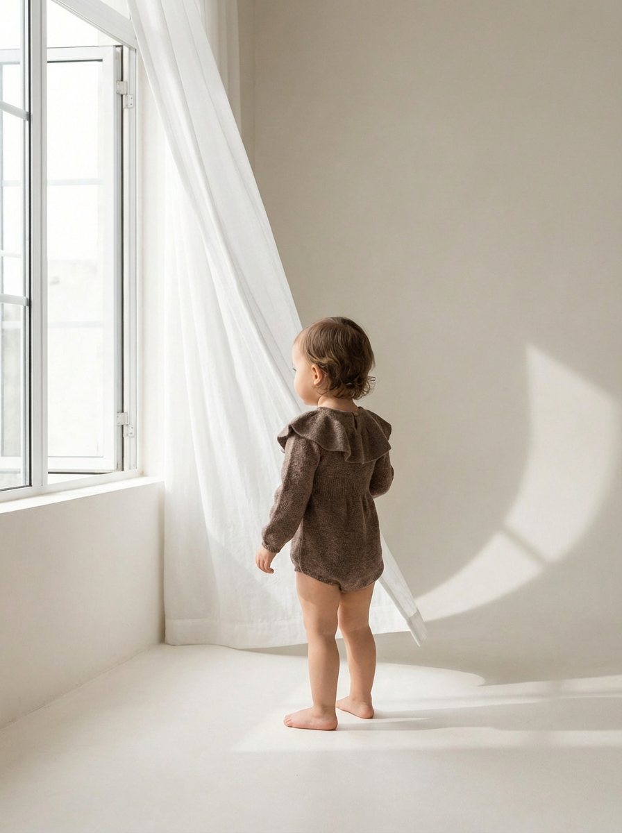 Wool long-sleeved romper in merino wool.