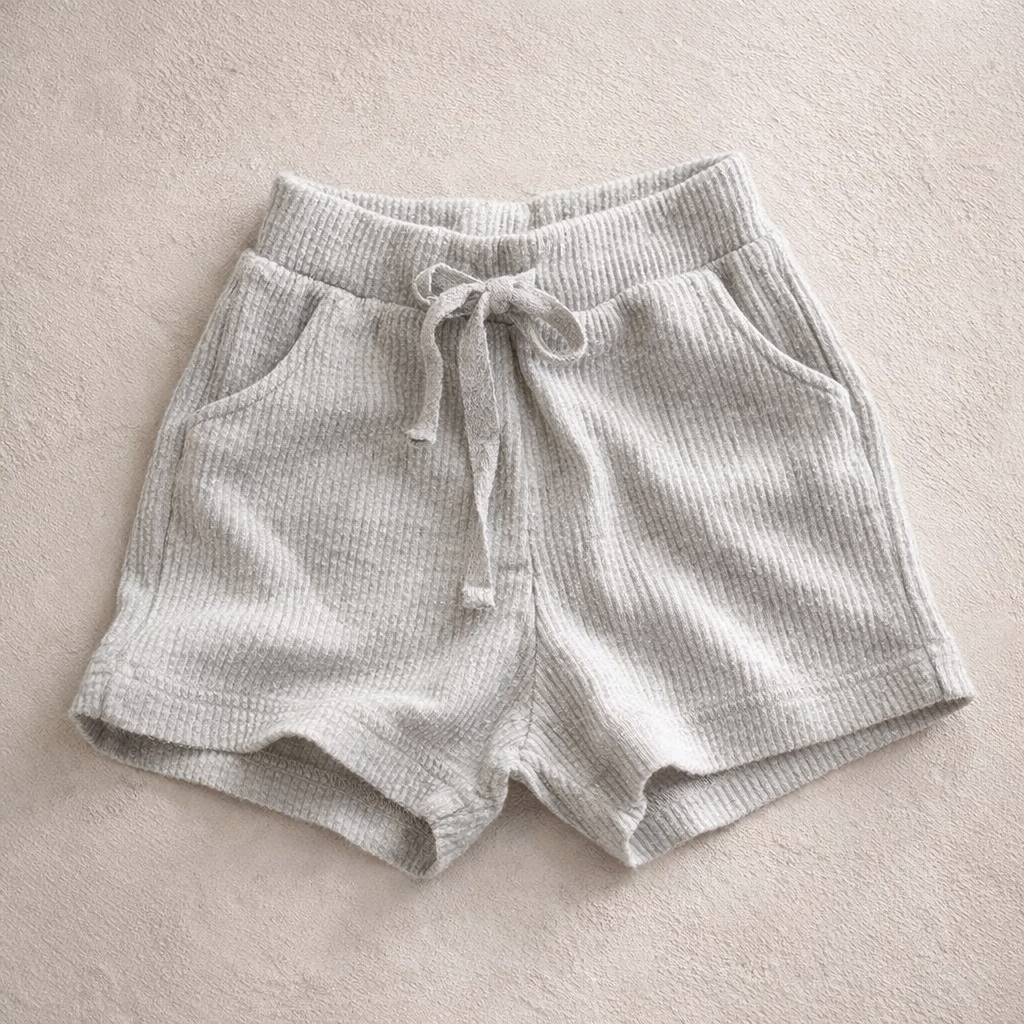 Cotton shorts of short length and elastic waist.