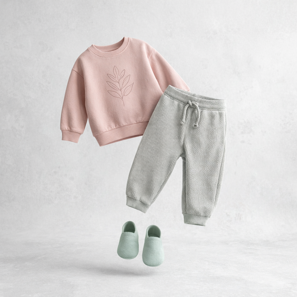Long pants in organic cotton with elastic waist.