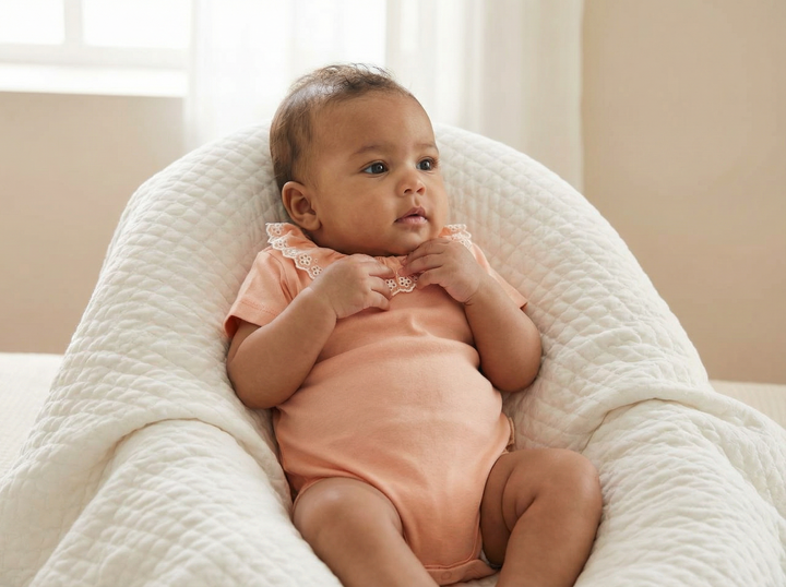Cotton bodysuit with short sleeves and decorative neck detail.