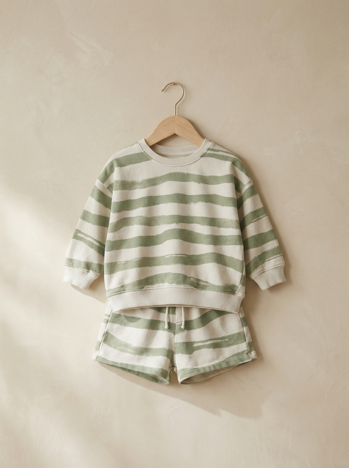 Set of cotton long sleeve t-shirt and shorts with elastic waist.