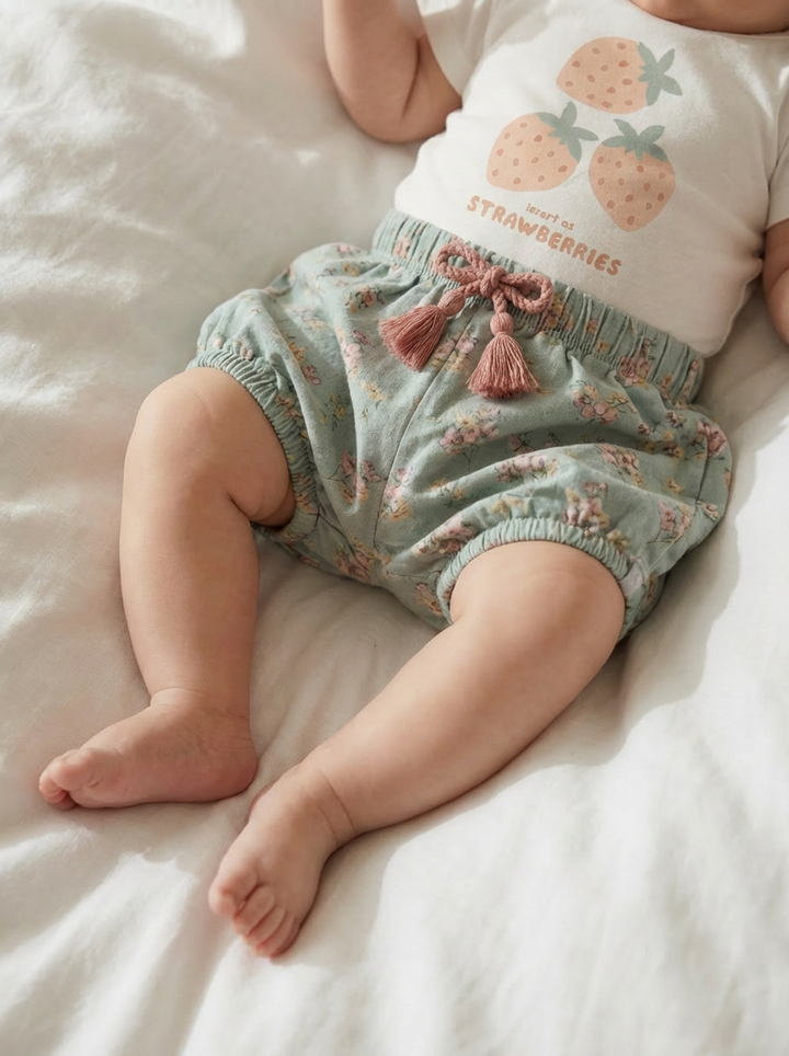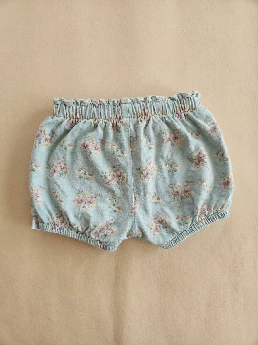 Cotton shorts with floral print and elastic waist.